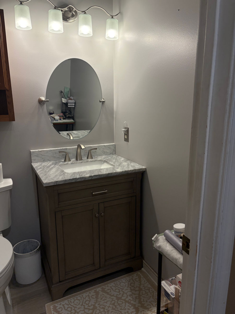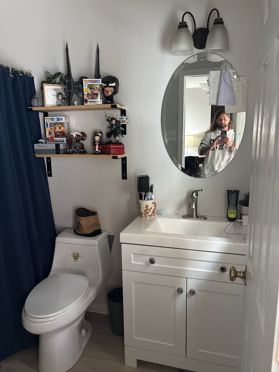 Here you will see the last two bathroom remodels we did this past month. Both are unique in their own right, but we were able to use fresh colors to make the area seem bigger. Got rid of the construction cabinets and put in new vanities, both also had new flooring installed as well as all fixtures being upgraded with modern fixtures.